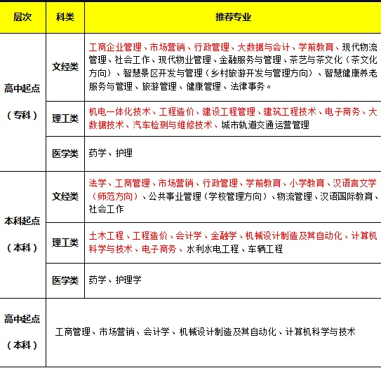 四、推荐专业(仅提供常见专业)