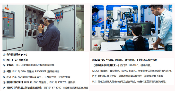 1、课程特色:系统全面:课程内容涵盖电工基础、PLC编程、驱动应用、触摸屏、运动控制等各类自动化应用。实践导向:采用理论与实践相结合的教学模式,通过项目实操让学员将理论知识应用到实际中。就业保障:报名时签订合同,毕业后可到相关单位工作,确保学员就业无忧。